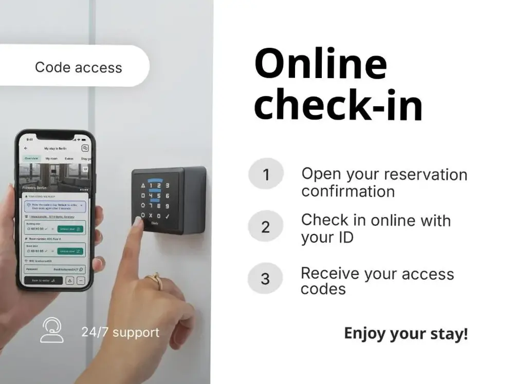 Nuestro proceso de check-in en línea requiere que los huéspedes completen información personal y carguen una identificación emitida por el gobierno antes de llegar a la propiedad. Los invitados recibirán su código de acceso personal una vez que se complete el check-in en línea.